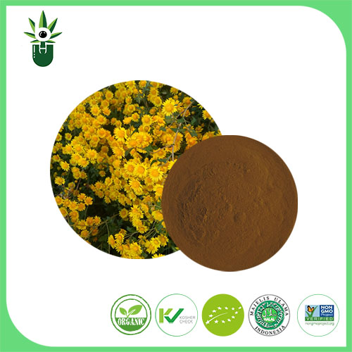 Extrakt z kvetov chryzantémy je žltohnedá prášková zmes bohatá na flavonoidy extrahované zo sušených hlávok kvetov Chrysanthemummorifolium Ramat. Divoká chryzantéma [Dendranthemaindicum (Linn.) DesMoul.] je rastlina z rodu Dendranthema (Compositae). Známa aj ako divá chryzantéma, zemná chryzantéma Chemicalbook kvet, trávová chryzantéma, horké Jóbove slzy, divoká horská chryzantéma, divoká žltá chryzantéma. Je široko rozšírený na severnej pologuli a nachádza sa vo všetkých provinciách a autonómnych oblastiach mojej krajiny. Rastie na svahoch, okrajoch priekop, okrajoch ciest, trávnatých porastoch atď. Divoká chryzantéma je bežne používaná čínska bylinná medicína, ktorá má účinky na rozptýlenie vetra, odvádzanie tepla, zlepšenie zraku a detoxikáciu. Farmakologický výskum v posledných rokoch zistil, že extrakt z divej chryzantémy má antibakteriálne, antivírusové, protizápalové a imunitné účinky, ochranu kardiovaskulárneho systému, protinádorové, hepatoprotektívne a neuroprotektívne farmakologické účinky a má dobrú klinickú aplikačnú hodnotu a potenciál.